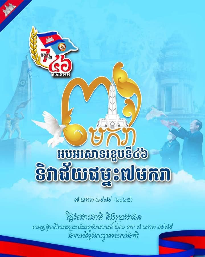 ស្នាមញញឹមអបអរសាទរខួបលើកទី៤៦ នៃទិវាជ័យជម្នះ ៧ មករា ( ១៩៧៩ – ២០២៥) ជាថ្ងៃរំដោះនិងសង្រ្គោះប្រទេសជាតិបានរួចផុតពីរបបប្រល័យពូជសាសន៍ ប៉ុល ពត។ ៧ មករា គឺជាកំណើតទី២ នៃពលរដ្ឋខ្មែរ និងជាដើមកំណើតនៃសន្តិភាពពិតប្រាកដសម្រាប់កម្ពុជាទាំងមូល។