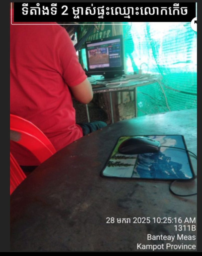 ខេត្តកំពត តាមប្រភពប្រជាពលរដ្ឋបានរាយការណ៍មកកាន់ភ្នាក់ងារសារព័ត៌មានយើងថា មានកន្លែងដាក់បើកលេងល្បែងស៊ីសងតាមប្រព័ន្ធអនឡាញទូរទស្សន៍លេបថត ប្រភេទមាន់ជល់និងឡូតូ ២ទីតាំង ដែលស្ថិតក្នុង
