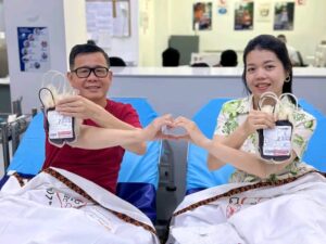 ថ្ងៃនេះ ខ្ញុំនិងភរិយា ព្រមទាំងសាច់ញាតិបងប្អូន មិត្តភក្តិ និងសហការី ពិតជាមានសេចក្តីសោមនស្សរីករាយ ដែលបានមកបរិច្ចាគឈាមនៅមជ្ឈមណ្ឌលជាតិផ្តល់ឈាម ដេីម្បីជួយសង្គ្រោះជីវិតមនុស្ស។